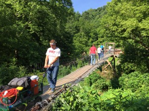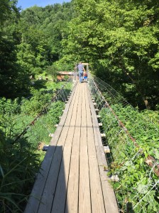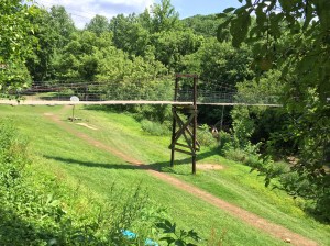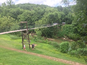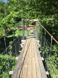 It turns out everyone in my group, myself included, is very brave! We conquered that bridge daily – sometimes with 3-4 rounds trips. I think each time we walked that bridge it got a little easier. Mostly. It wasn’t until Friday afternoon that I could sort of turn my head to the side to glance at the creek below. For the most part I had to look straight ahead and walk very slowly – if anyone ahead or behind me started to walk too fast, I had to stop because it got to bouncy. I’m telling you – this bridge is intense!